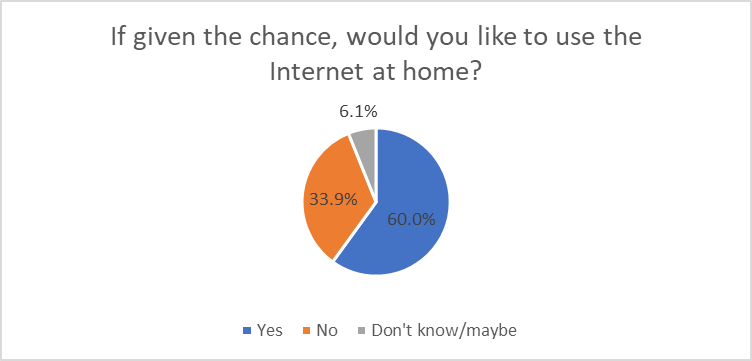 Among the participants in this study, Detroiters say they are very well aware of the benefits of Internet access. Most use the Internet regularly. Most have very positive attitudes toward the Internet, especially when compared to any stated fears. While most are regularly online and use the Internet at home, 60 percent of those who do not have home access say they would like it.