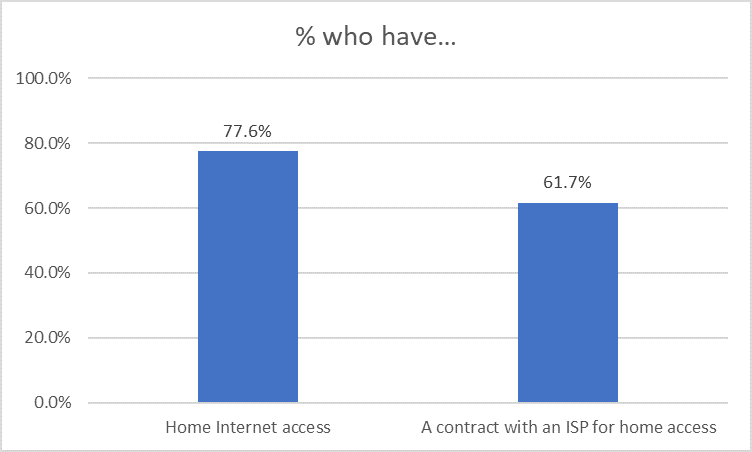 Our study found that even among those who do not have home access, Detroiters overwhelming find a way to get online. Like other studies, our study found that only about 60 percent of Detroit households have a contract with an Internet Service Provider in their home, however, that statistic alone is misleading. When asked if they have home Internet access, about 78 percent say yes. This suggests that most find a way to access the Internet at home with or without an ISP. Even more people are online when they are traversing around the city.
